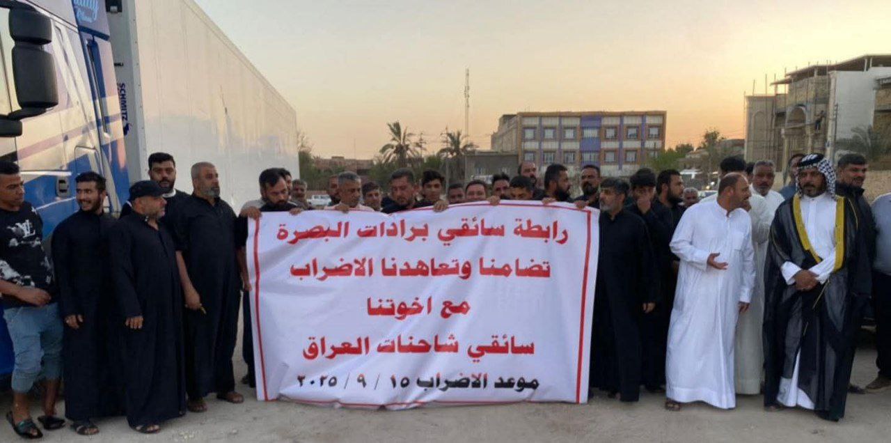 وقفة احتجاجية لسائقي الشاحنات المبردة في البصرةنظم سائقو الشاحنات المبردة في منطقة الجمعيات بمحافظة البصرة وقفة احتجاجية، مطالبين بتوفير ساحة مخصصة لهم وتوحيد أنظمة الموازين بين المحافظات.وحذر المحتجون من احتمال اللجوء إلى إضراب شامل في عموم العراق إذا لم تُستجب مطالبهم.
